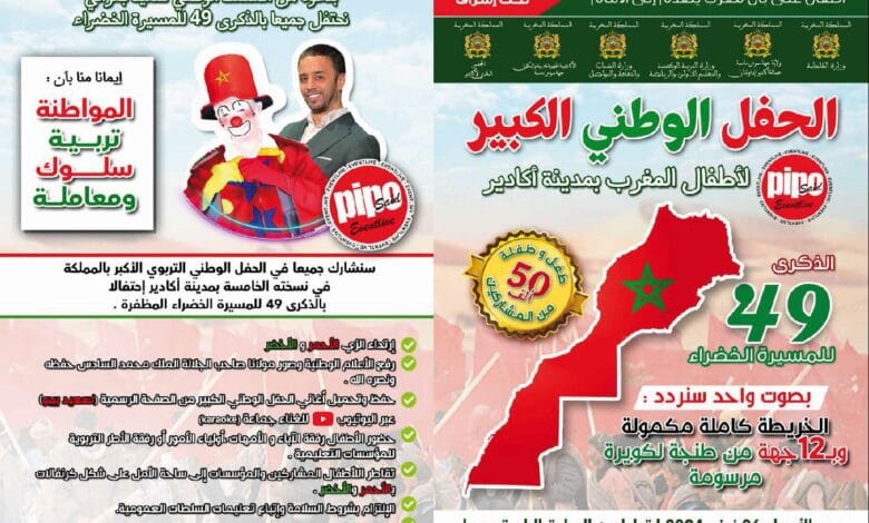 تستضيف مدينة أكادير النسخة الخامسة للحفل الوطني للأطفال يوم الأربعاء 06 نونبر المقبل على الساعة الثالثة زوالا بساحة الأمل، تحت شعار “الخريطة كاملة مكمولة وبـ 12 جهة من طنجة للكويرة مرسومة”، احتفالا بالذكرى 49 الغالية للمسيرة الخضراء.